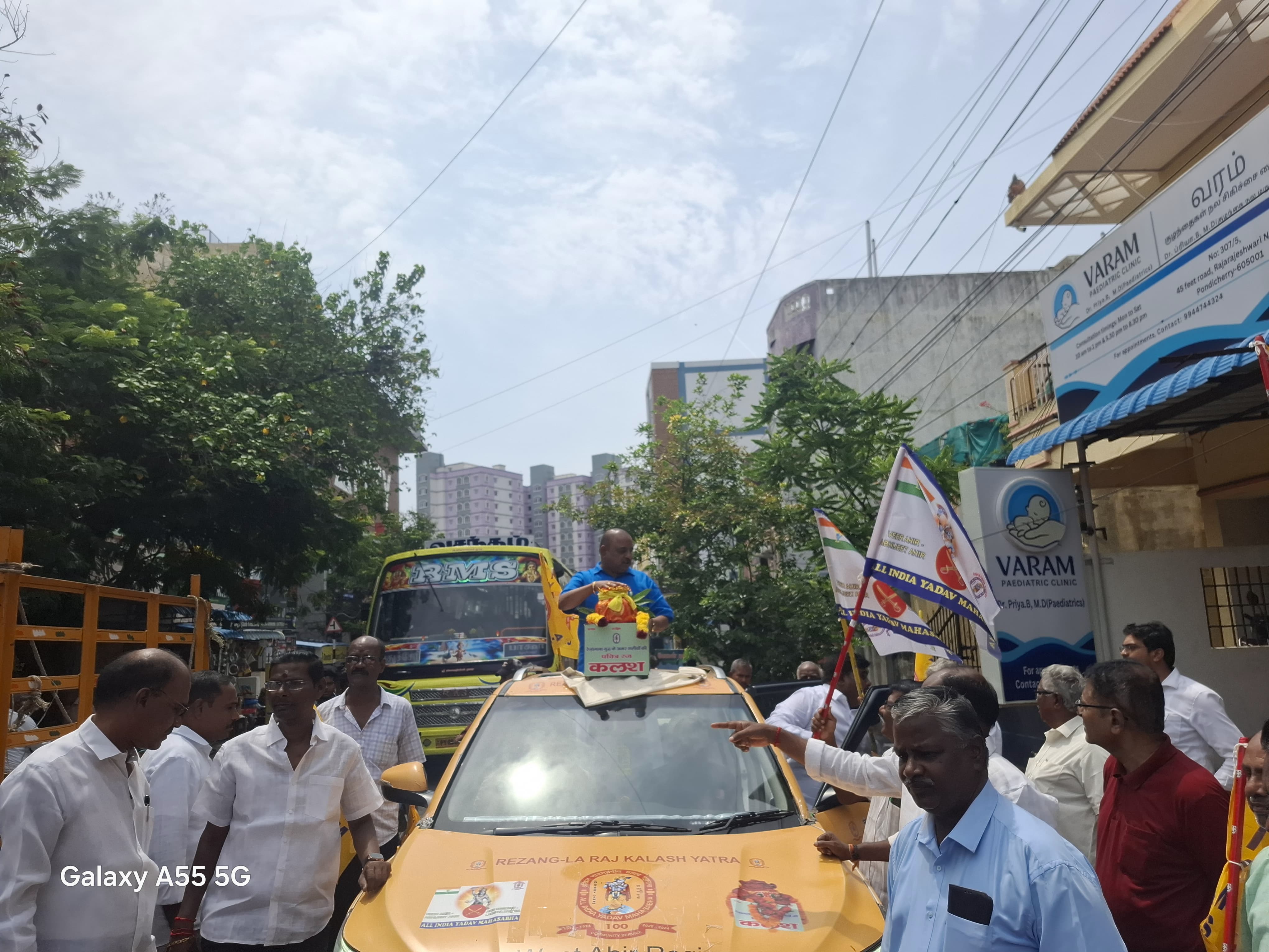 ராணுவ கலசம் யாத்திரை மார்க்கெட் வழியாக ஆரம்பித்து தமிழ் சங்கம் அரங்கம் வரை ஊர்வலமாக சென்றது,