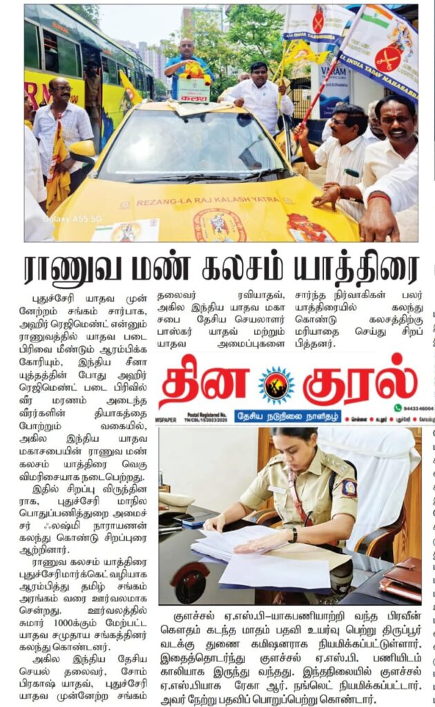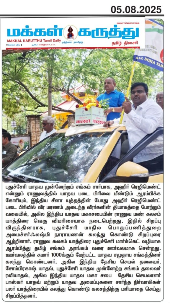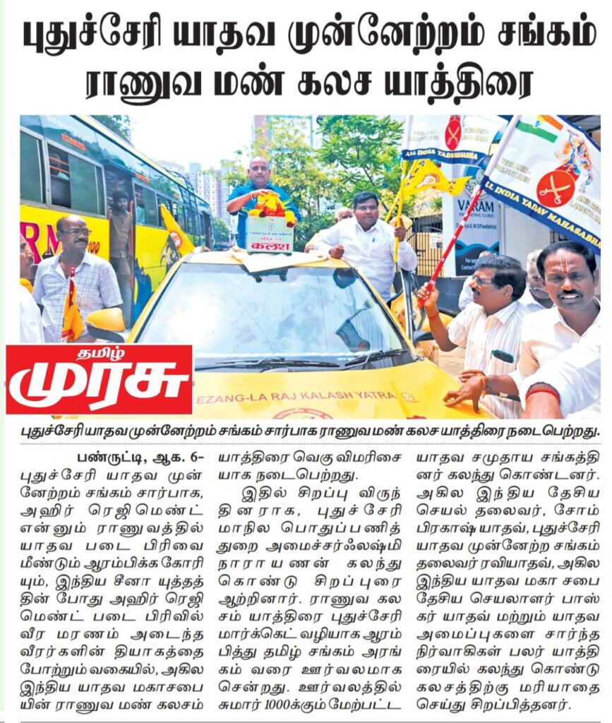 அஹிர் ரெஜிமெண்ட் என்னும் ராணுவத்தில் யாதவ படை பிரிவை மீண்டும் ஆரம்பிக்க கோரியும்,